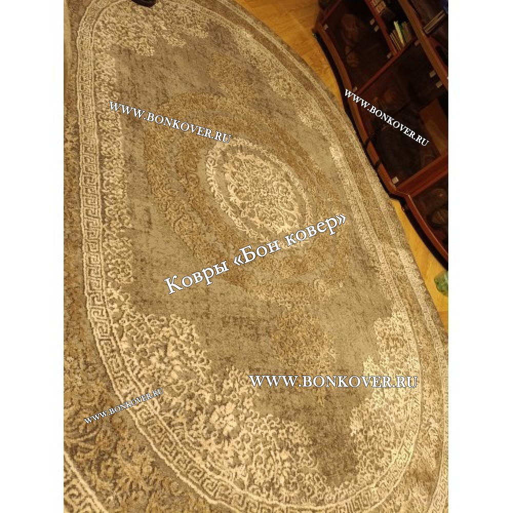 Шикарный Классический ковер дизайн 93 Коричневый с серым овал наполняет интерьер квартиры теплом и уютом, гармонично сочетает в себе изящество и стиль. Он соткан из экологически чистого сырья, комфортный и долговечный.